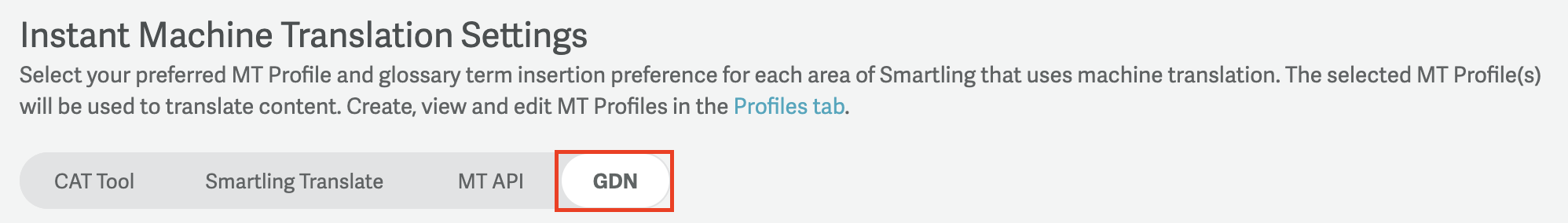- Switch on the toggle to Enable Machine Translation for GDN.