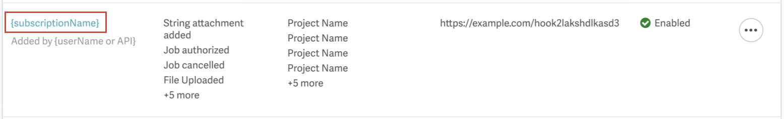 - Status: Enabled (active) or Disabled (inactive). Disabled subscriptions don't send webhooks.