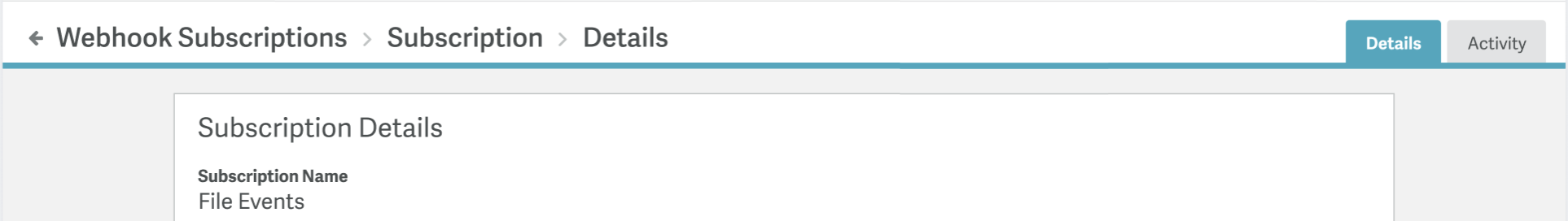 To view all details and the activity log for a webhook subscription, click on the subscription name.