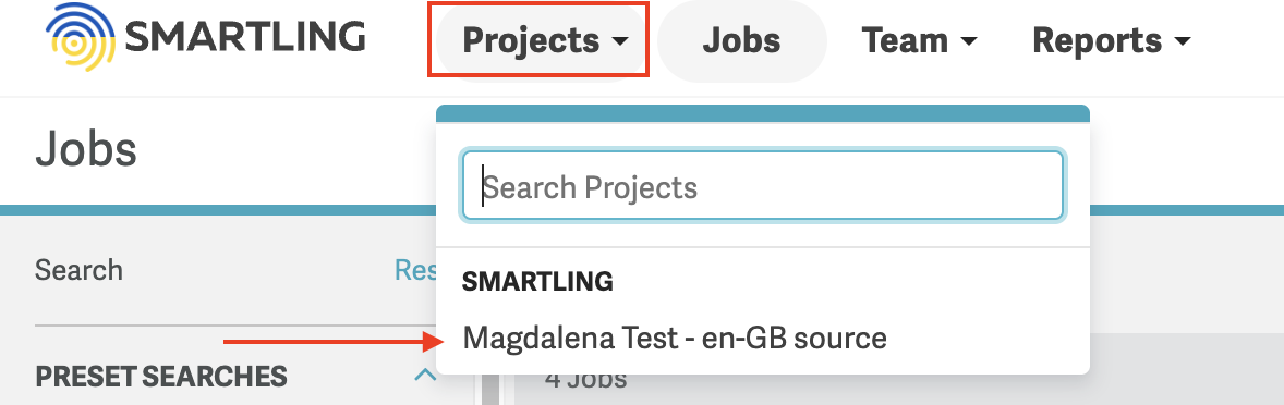 - From the Projects dropdown, click into one of the projects you have access to.
