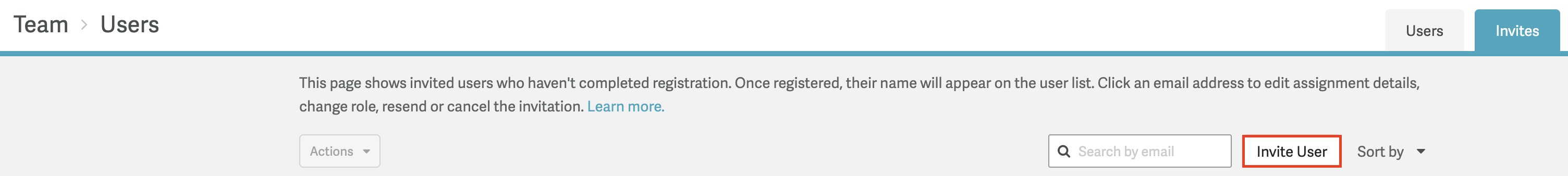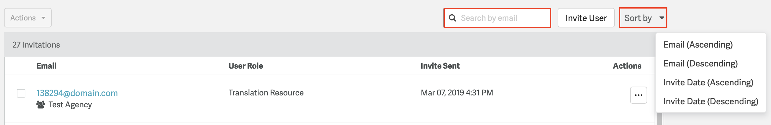 - You can sort the Invites list by the user's email or by the date the invitation was created.