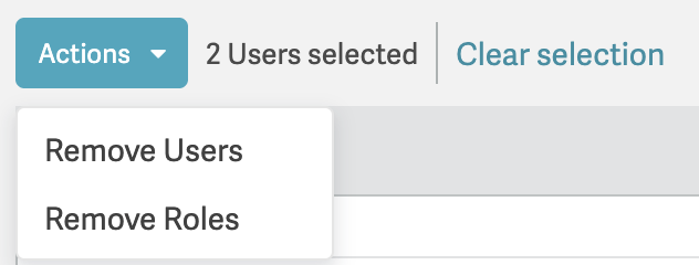 - Remove Roles: This action removes a user's role and workflow assignments, but does not remove their details from your Smartling account. The user's account remains available in the Users list and can be reused at a later point. See below for information on bulk actions.