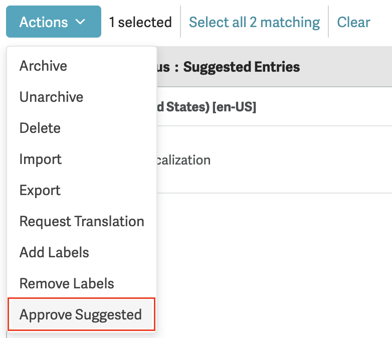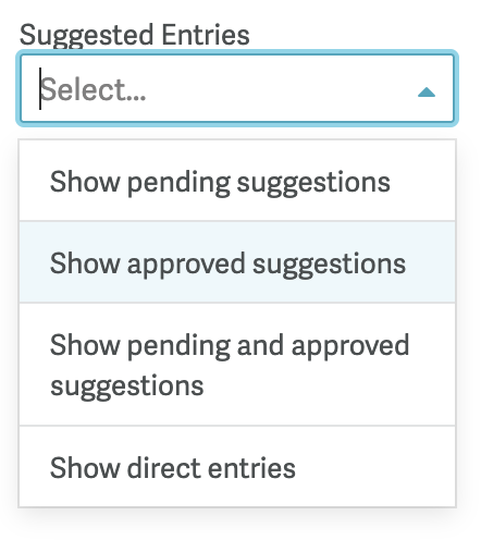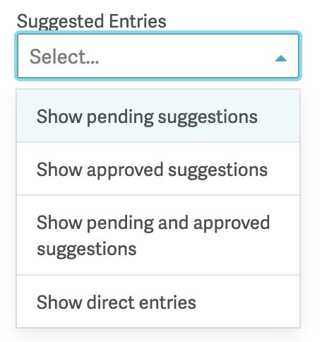 - Use the "Suggested Entries" filter to "Show pending suggestions".