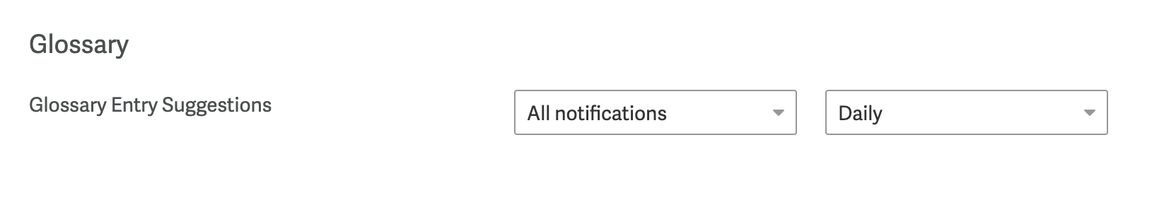 Info: Glossary Entry Suggestions notifications are disabled by default, but can be enabled from your Notification settings.