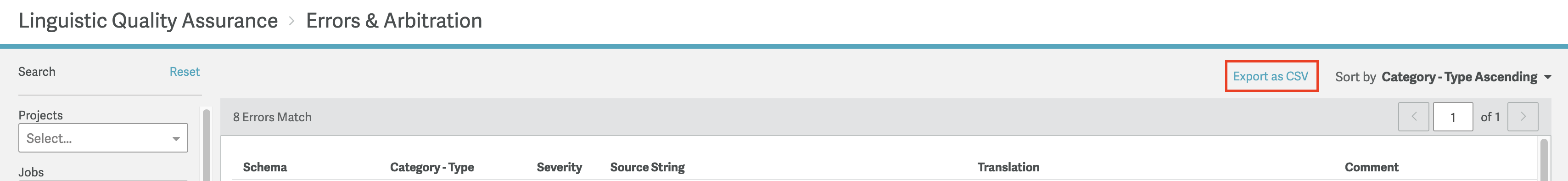 Alternatively, you can view all errors, record additional errors on a translation, and arbitrate any errors recorded from the Linguistic Quality Assurance Errors & Arbitration Report.